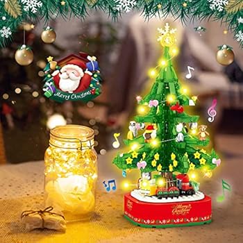 Amazon Com Christmas Tree Building Sets Creative Holiday Present Idea For Adults Music Box Bricks Toy For Kids Ages 8 486 Pieces Toys Games