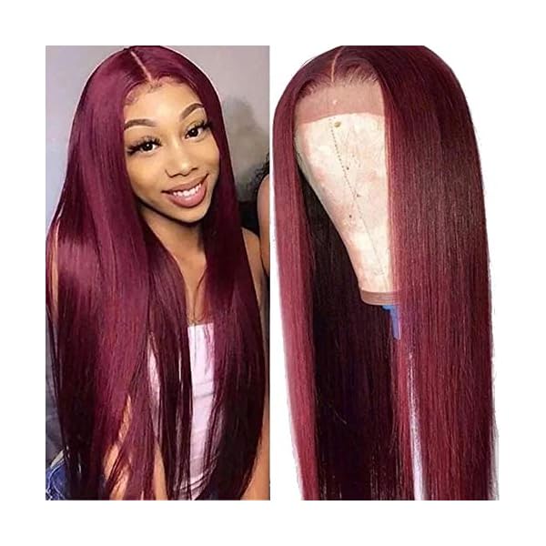 Unice Hair Straight Burgundy T Part Lace Closure Human Hair Wigs Red Color Middle Part Peruvian Virgin Hair Silk Base Fake Scalp Pre Plucked 99j Wig For Women 150 Density 16 Inch
