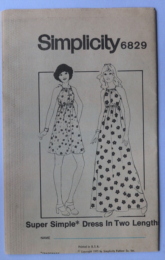 Simplicity 6829 Misses Halter Dress Pattern Vintage 1975 Etsy